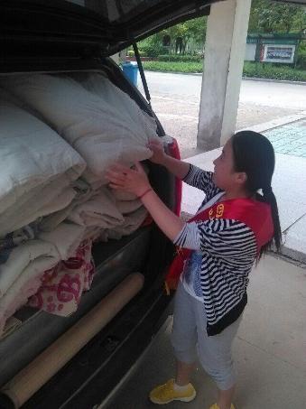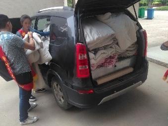 我系“四叶草”青年志愿者服务队为贫困地区送棉被活动