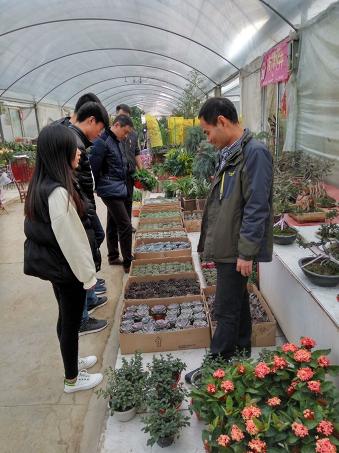 为了加强与企业交流合作,加深同学们对企业的深入了解,对所学专业有直观切实的认识,拓展我系“花漾年华”花艺社的发展空间,2017年3月1日,农林工程系张明主任、许宇恒老师组织“花漾年华”社团主要成员到格林部落花卉公司进行参观学习,公司的相关负责人进行了热情接待,详细介绍讲解了花卉苗木的繁育过程,热心回答了同学们提出来的问题,并带领师生参观了生产室、育苗室、智能温室及展销场等。随后,我系两名在公司工作的毕业生还就自己在公司的成长经历及工作体会,与学弟学妹做了交流。