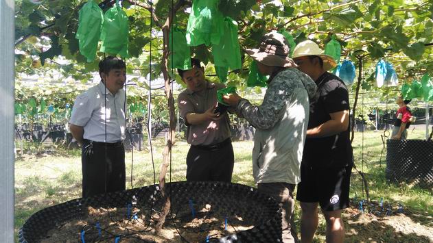 谢书记一行实地察看了葡萄、桃的品种、长势和基地运行情况,听取了基地主任王胜永有关硬件建设、运行管理、学生实训及“植物种苗生产中心”项目实施进展情况的汇报,并就基地下一步发展定位及存在的问题进行了详细了解和互动交流。
