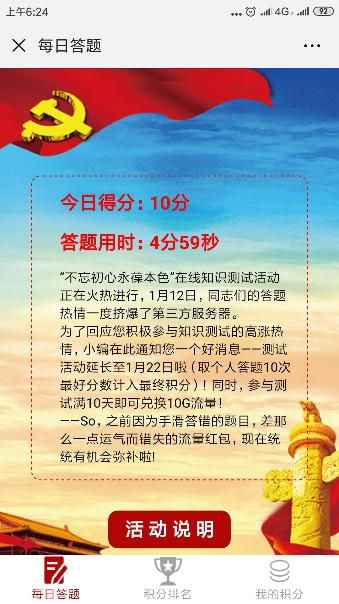 农林工程党支部“不忘初心 永葆本色”在线知识测试活动圆满完成