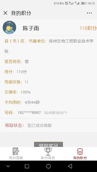 根据《中共徐州市委办公室关于印发《“不忘初心 永葆本色”警示教育月活动方案》的通知》(徐委办[2018]223号)要求,为扎实开展好警示教育月活动,深入学习贯彻新时代全面从严治党新要求,增强党员干部廉洁自律意识和法纪观念,2019年1月12日-21日,农林工程党支部组织开展“不忘初心 永葆本色”党章党规党纪和宪法、监察法在线知识测试活动,测试内容包括《监察法》、《中国共产党章程》、《中国共产党廉洁自律准则》、《中国共产党纪律处分条例》、《中国共产党问责条例》、《中国共产党党内监督条例》、《关于新形势下党内政治生活的若干准则》、《中国共产党巡视工作条例》、十九大精神相关知识。