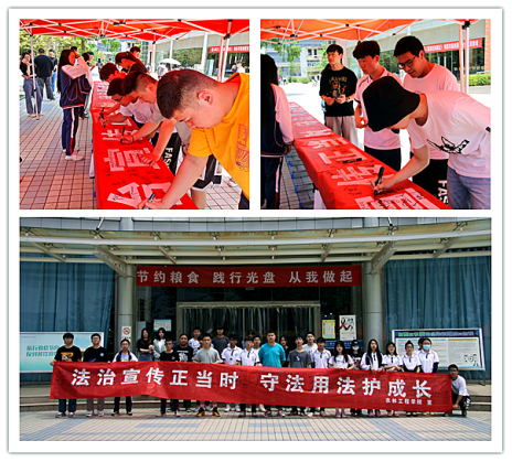 此外,我院在食堂门口开展的“法治宣传正当时,守法用法护成长”现场签名活动,也吸引了广大师生的驻足和积极参与。大家用签名的方式,表达守法尊法的意愿,营造良好的法治教育氛围。
