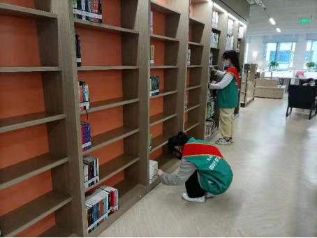 活动开始后,志愿者们根据工作分配,达到不同岗位,在相关工作人员的指导下,以认真负责的饱满精神状态在相关区域内开展工作。在一楼综合服务大厅,志愿者们对前来借阅的市民朋友进行引流,防疫提醒,指导借阅流程,协助办理图书证,并将书籍按照编号整理排列。他们将一本本还回的书重新统计,清点,归类,再分门别类送还至一楼至四楼,在服务他人的同时,也充当着文化的传承者,爱心的传递人。二楼工作的志愿者各尽其责,负责接待、维持阅览室的秩序等。三楼负责幼儿阅读区域的志愿者们,除了要足够细心保证小朋友安全的同时,还要弯腰俯身去耐心帮助每一位有需要的小朋友。他们穿梭于一排排书架中,在忙碌的同时收获了沉甸甸的满足感。