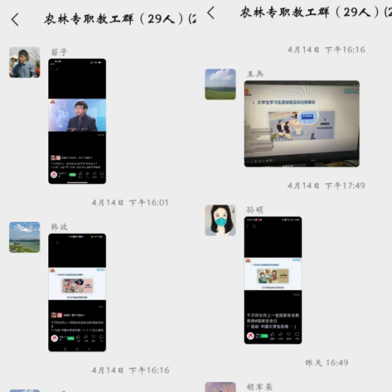 2023年4月15日是我国第八个全民国家安全教育日。为全面贯彻落实习近平总书记提出的总体国家安全观,提高学院师生国家安全意识,增强国家安全责任,4月14日下午,农林工程学院辅导员陈子雨、李守航老师组织师生在线观看“千万师生同上一堂国家安全教育课”。