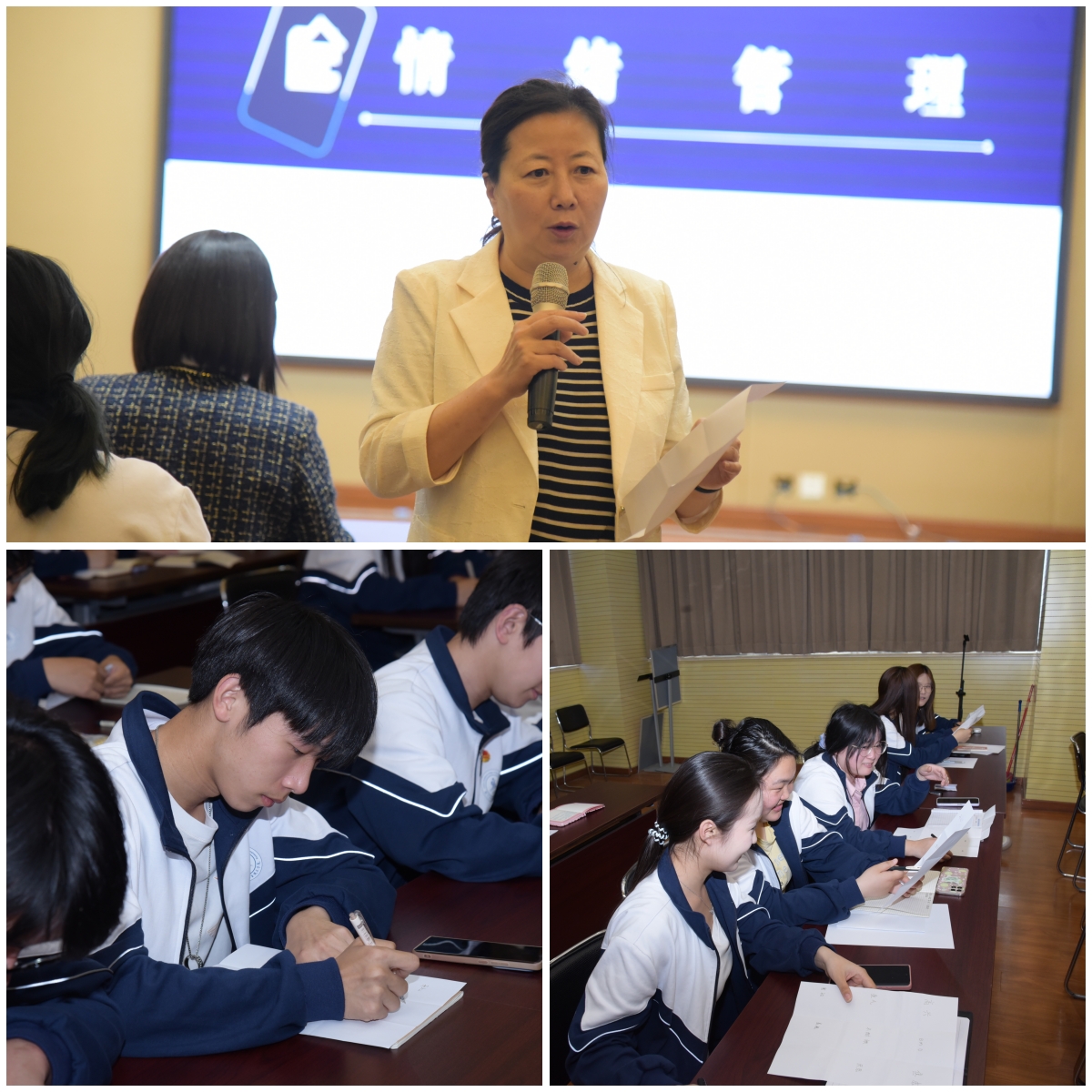 段教授首先对焦虑进行了解读,后用扎实的理论功底从“主观体验”、“生理唤醒”、“外部表现”三方面为“小村干们”介绍了情绪三要素,帮助他们更好地了解情绪的含义。同时,段教授以她风趣的语言和生动的案例引导“小村干们”正确处理情绪。