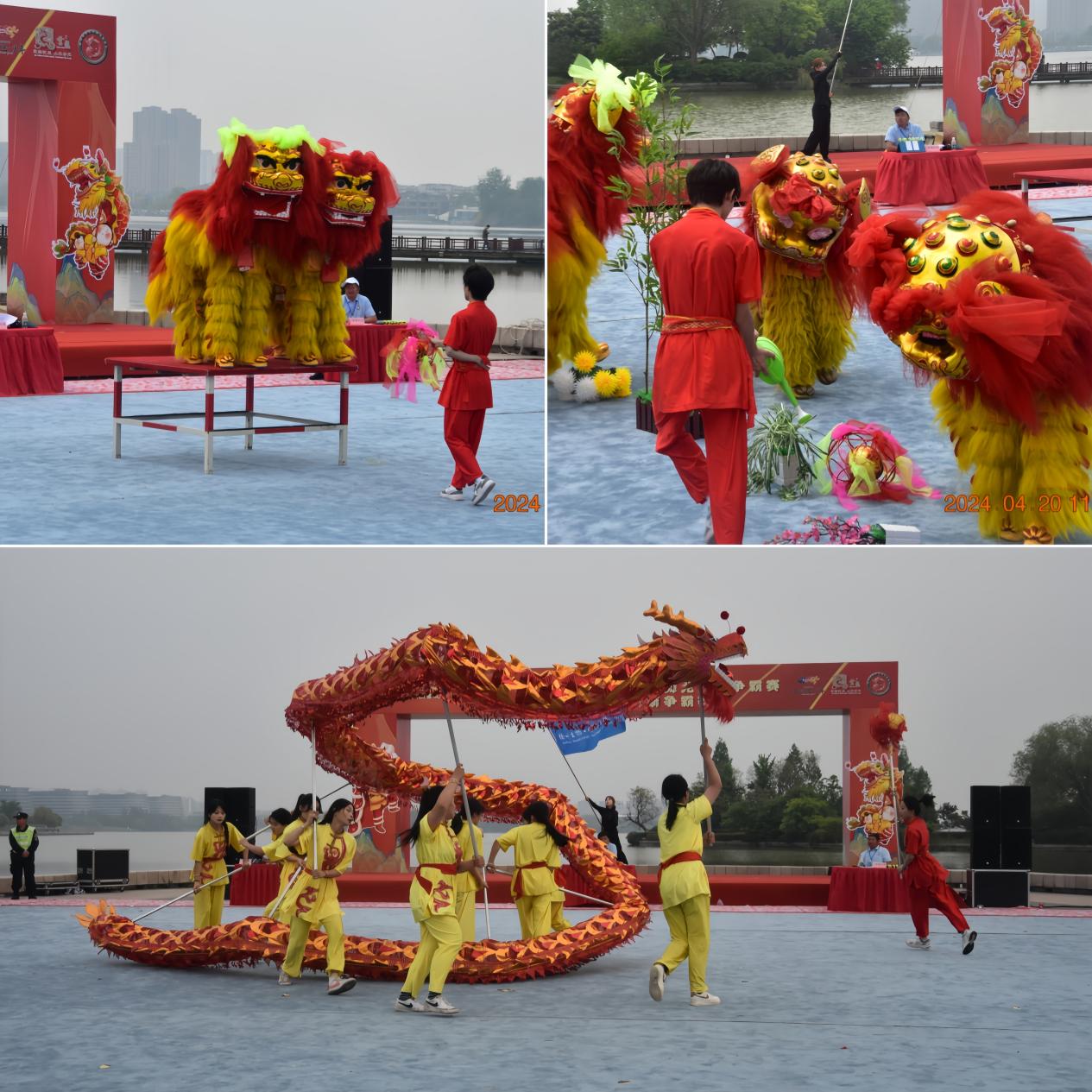 4月20日,2024年第七届淮海经济区舞龙舞狮争霸赛暨徐州市舞龙舞狮争霸赛在徐州市云龙区大龙湖亲水广场举行,来自各地的43支代表队的560余名运动员齐聚彭城,展开为期两天的激烈角逐。