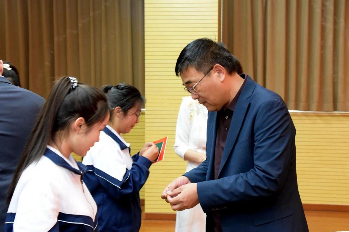 徐州生物工程职业技术学院团委书记徐媛媛宣读了12名新团员名单。徐州生物工程职业技术学院党委书记徐锋,邳州市委常委、组织部部长杨毅,逐一为新团员颁发团徽徽章和团员证。