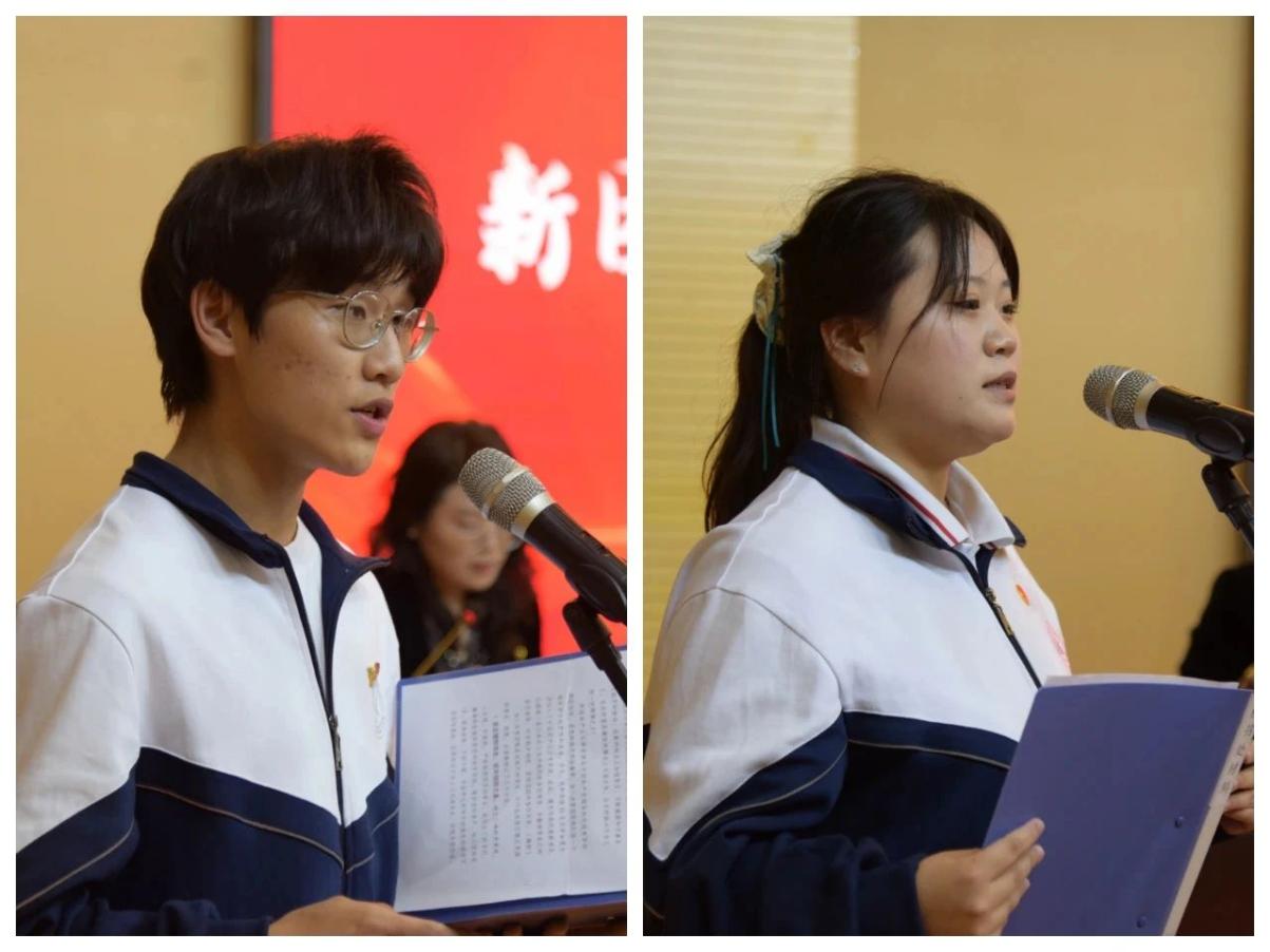 新团员代表时晗和优秀团员代表李淑芬分别发言。