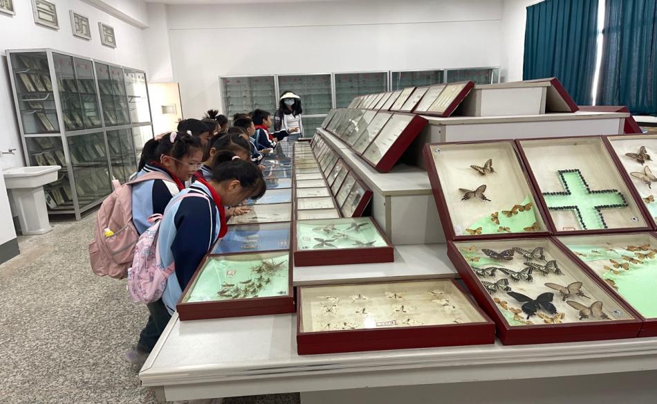 研学活动的第一站是我院精心筹备的标本实验室。这里,各式各样的植物标本和昆虫标本错落有致地陈列着,仿佛一个微缩的自然博物馆,引领着孩子们走进了一个光怪陆离的生物世界。