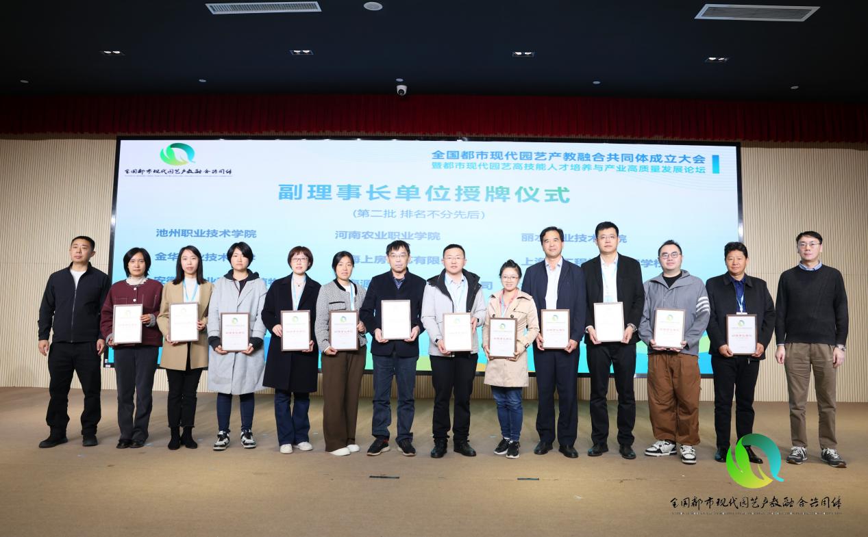 大会举行了全国都市现代园艺产教融合共同体授牌仪式,与会领导分别为理事长单位和副理事长单位授牌,同期举行了都市现代园艺高技能人才培养与产业高质量发展论坛。共同体将面向全国都市现代园艺行业急需的高素质技能人才培养,构建产教供需对接机制,联合开展人才培养、开发教学资源、共研实践项目、协同技术攻关和驱动产业链升级,为全国都市现代园艺应用领域高质量发展提供人才和技术支撑,助推国家农业强国、乡村振兴等战略落实落地。我校作为副理事长单位,将积极发挥产教融合共同体的联动作用,致力于培养更多应用型、复合型和创新型园艺类专业技能人才,促进产业链、创新链与教育链、人才链的有效对接!