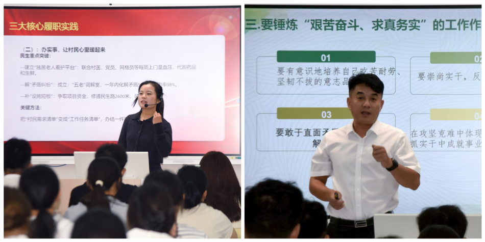 针对“定制村干”新生,邳城镇吕滩村党支部书记刘林、沛县敬安镇新安集村党支部书记张伟分别开展基层工作经验分享。刘林结合 “短视频推广+ 电商赋能”助力村域产业发展、推动土地入股合作促进村民增收、搭建民生服务平台优化乡村治理的实践案例,传授基层工作方法与“避坑”指南;张伟从“定制村干”的使命价值出发,系统指导新生如何精准学习政策法规、深耕农业技术研究、提升乡村治理能力,为新生规划基层职业发展道路提供清晰指引。