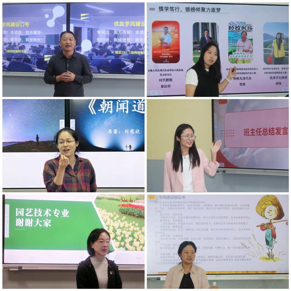 班会现场,各班紧扣“学风建设”主题,将专业特色与学风建设深度融合,既有“大学规划时间轴”的破冰分享,又有“专业认知辩论赛”的唇枪舌战;既有园艺专业的以“种”定志、逐梦生长,又有“定制村干”班的学风口号、凝“声”铸魂·······知识问答、小组讨论、情景模拟等创新方法轮番上演,“学生主导、师生共研”的参与式设计耳目一新。学风建设不再是枯燥的说教,而成为学生们乐于参与的思维碰撞,自然生发出“聚情怀、练本领、强学风”的内生动力。