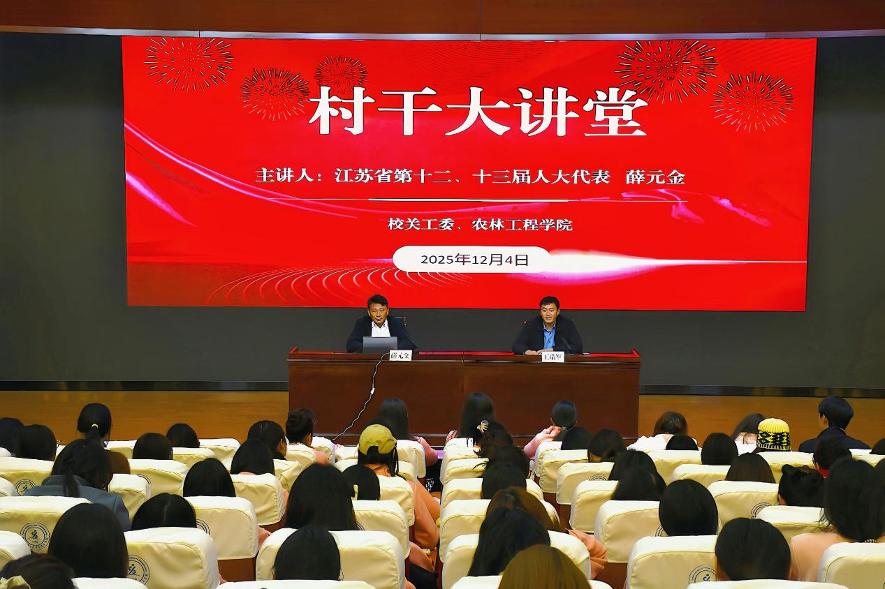 2025年12月4日,拥有41年农村工作经验的“老干”薛元金应邀走进徐州生物工程职业技术学院,以“懂农业、爱农村、爱农民,争做新时代农业现代化的新农干”为主题,为定制村干班“小村干们”带来了一场干货满满的交流讲座。